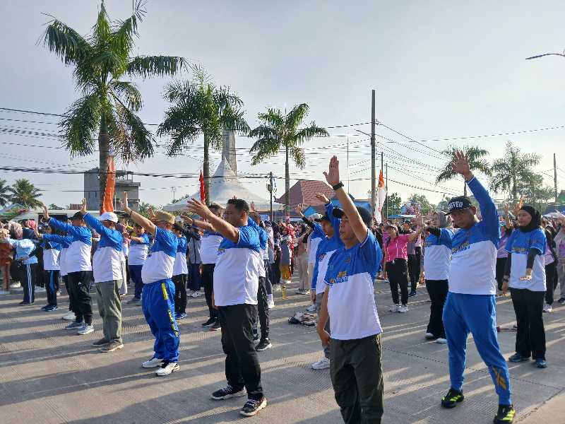 KUALA TUNGKAL – Pemerintah Tanjung Jabung Barat melalui Dinas Pariwisata Kepemudaan dan Olahraga bersama Komiter Olahraga Masyarakat Indonesia (KORMI) menyelenggarakan Jalan Santai dan Senam Bersama masyarakat, Minggu Pagi (14/9/2025).