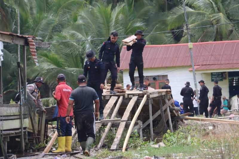 KUALA TUNGKAL – Polres Tanjung Jabung Barat (Tanjab Barat) menunjukkan kepedulian nyata dengan merenovasi jembatan vital di Desa Kuala Baru, Kecamatan Seberang Kota, Jum’at (12/12/2025).