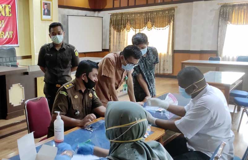 KUALA TUNGKAL – Seluruh pegawai di lingkup Kejaksaan Negeri Kabupaten Tanjung Jabung Barat mendadak dilakukan rapid test Covid-19, Rabu
