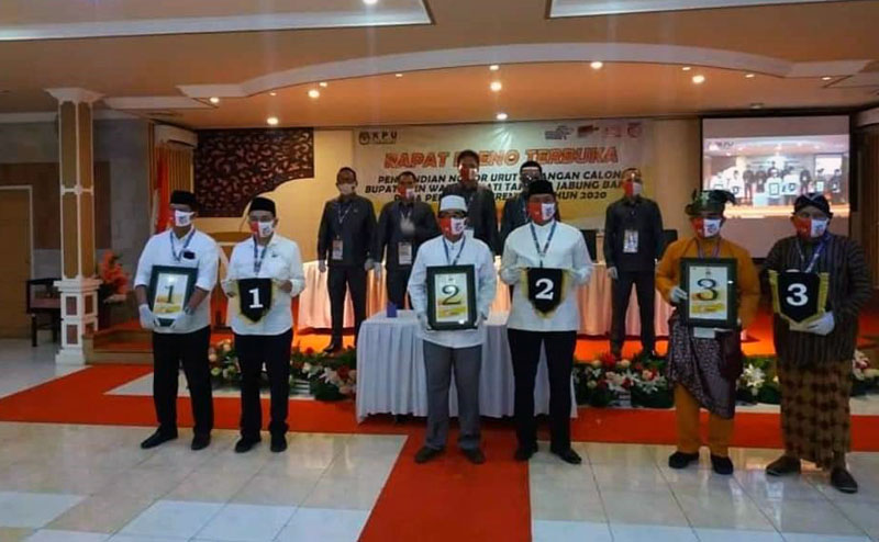 TEBING TINGGI – Keempat Calon Kepala Desa (Kades) Delima, Kecamatan Tebing Tinggi, Kabupaten Tanjung Jabung Barat, Jambi mengikuti pencabutan